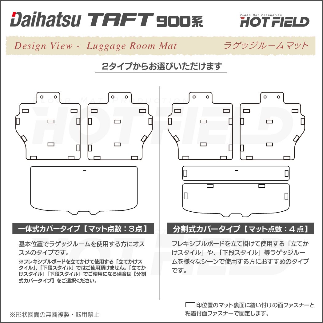 こちらで商品を買うのは2回目です。 品質および納期等大変よいです。 後部座席背面部のマットはマジックテープ付きの両面テープで取り付け指示があります。 脱脂クリーナーもご丁寧についてきました。 マットの上に物を置いても滑りにくいため安心です。