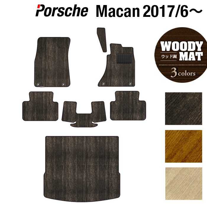 ポルシェ マカン 2017年6月~対応 フロアマット+トランクマット ラゲッジマット ◆ウッド調カーペット 木目 HOTFIELD