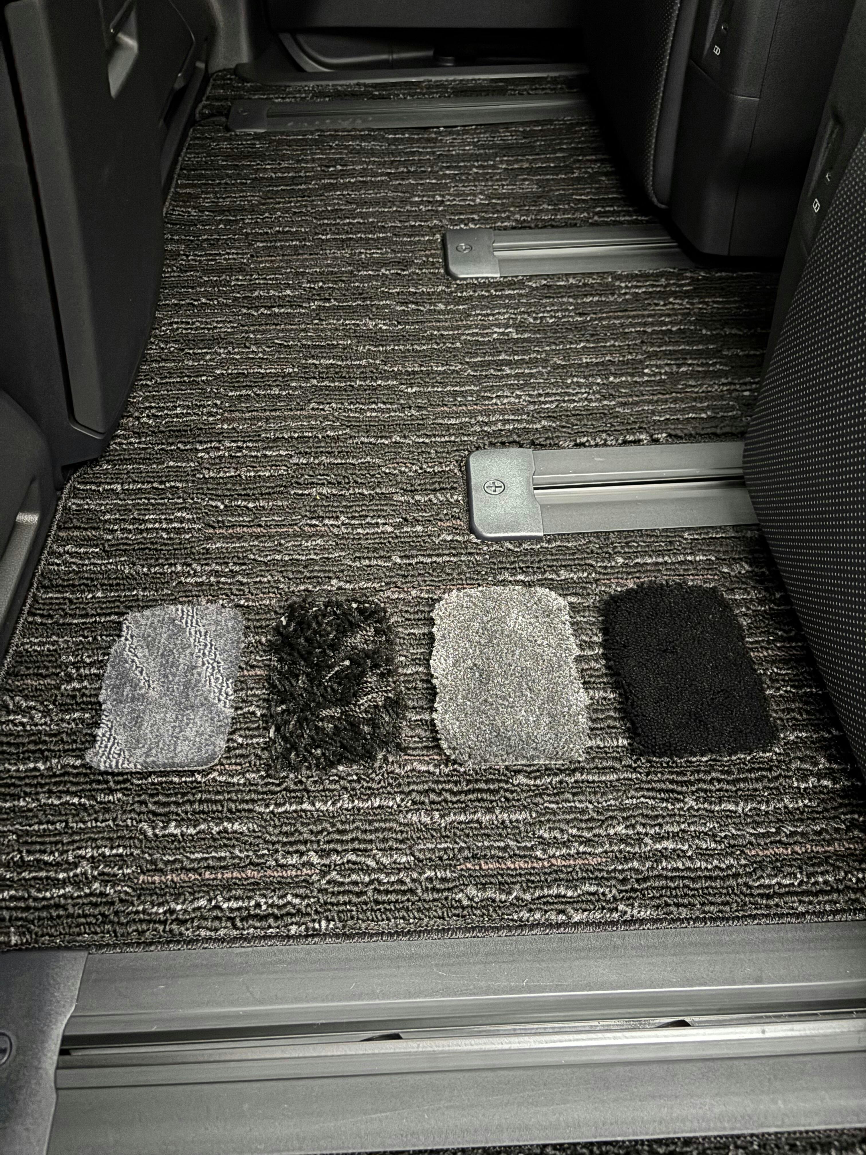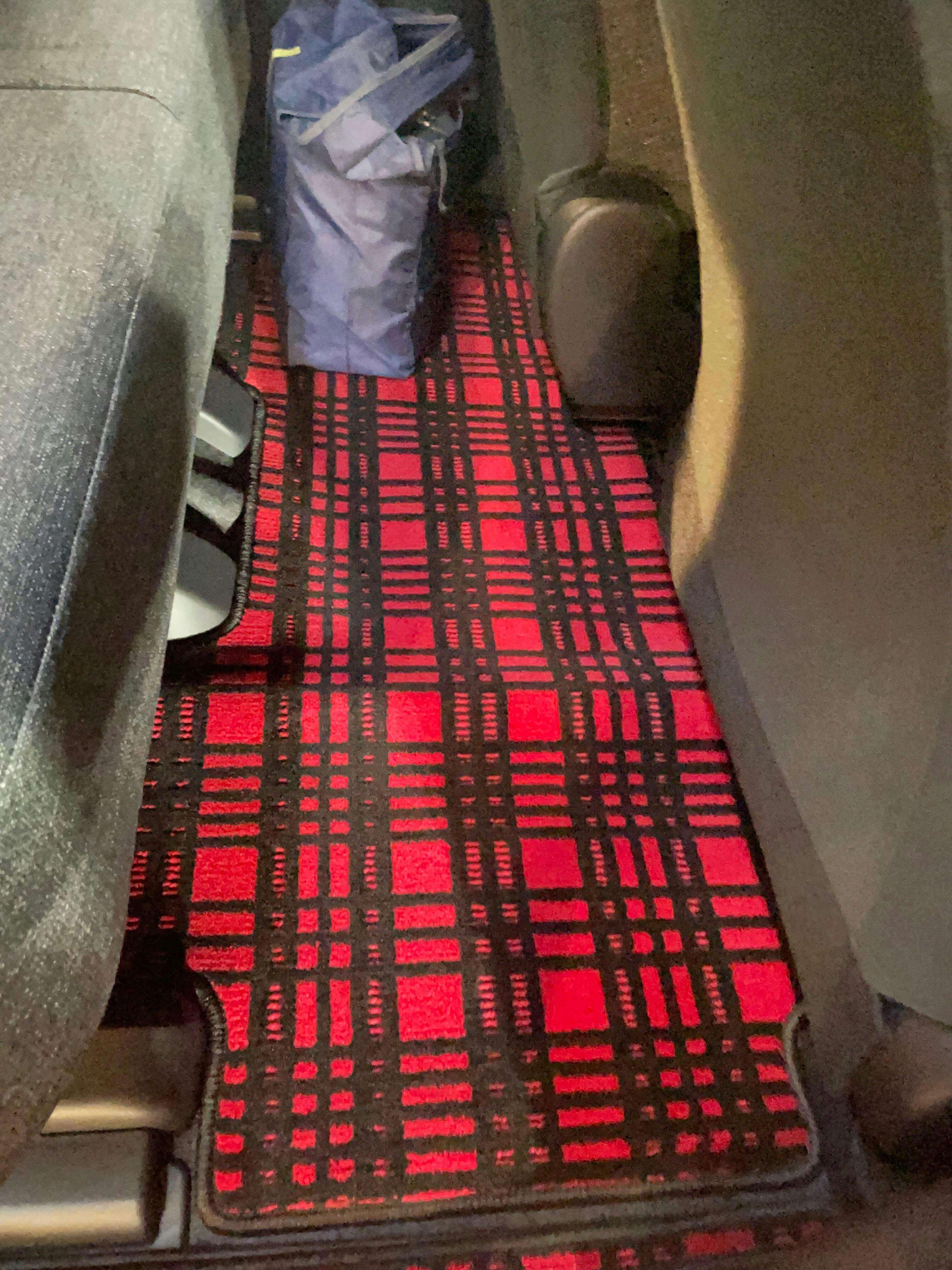 車のシャフトトンネルがフラットな形状なので後部マットのまん中部分がほんの少し床と隙間がある。時間が経てば馴染むか様子見中。