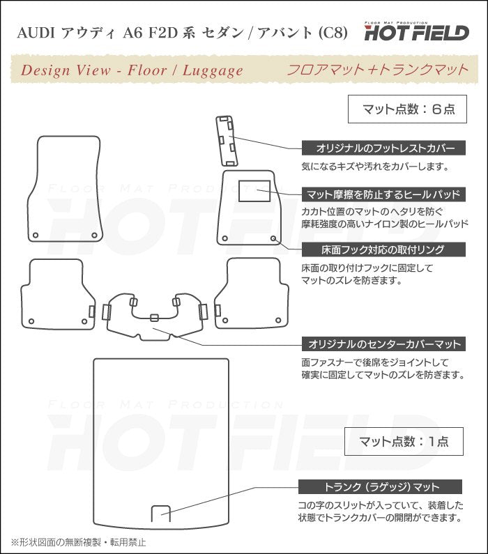 AUDI アウディ 新型 A6 (C8) F2D系 フロアマット+トランクマット ラゲッジマット ◆ウッド調カーペット 木目 HOTFIELD