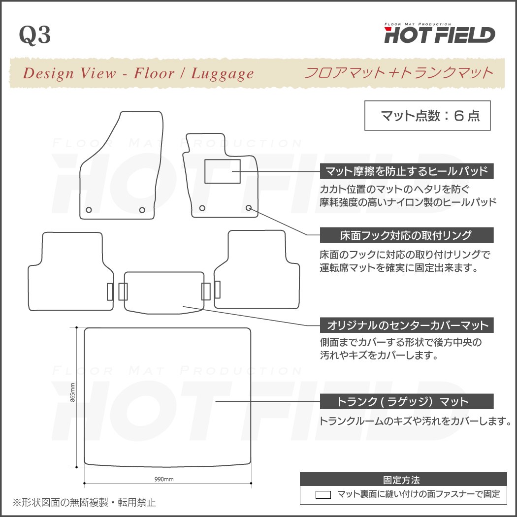 AUDI アウディ Q3 8U系 フロアマット+トランクマット ラゲッジマット ◆シャギーラグ調 HOTFIELD