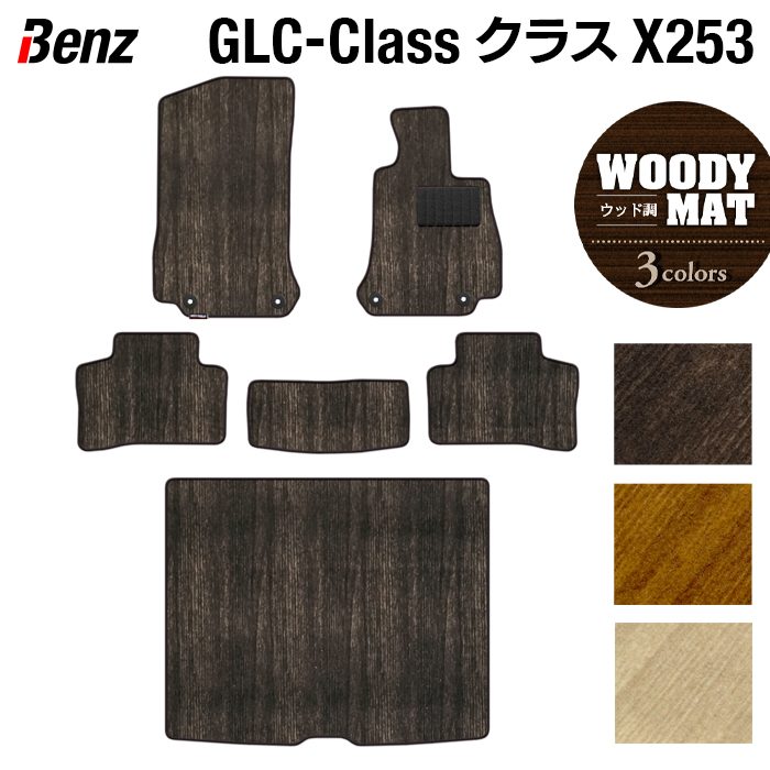 ベンツ GLCクラス (X253) フロアマット+トランクマット ラゲッジマット ◆ウッド調カーペット 木目 HOTFIELD