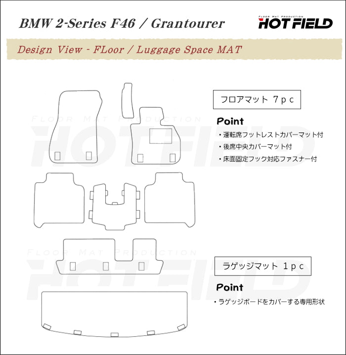 BMW 2シリーズ F46 グランツアラー フロアマット+トランクマット ラゲッジマット ◆ウッド調カーペット 木目 HOTFIELD