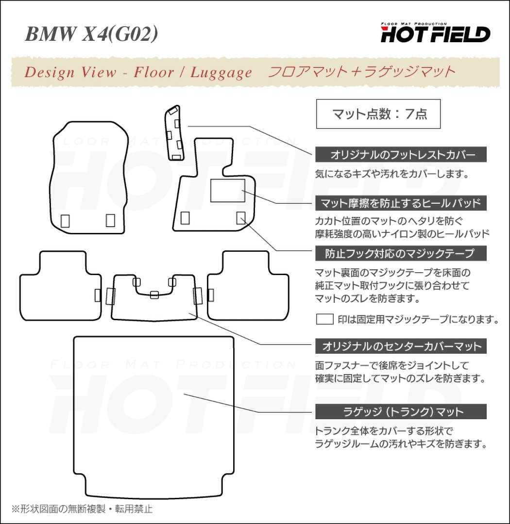 BMW X4 (G02) フロアマット+トランクマット ラゲッジマット ◆シャギーラグ調 HOTFIELD