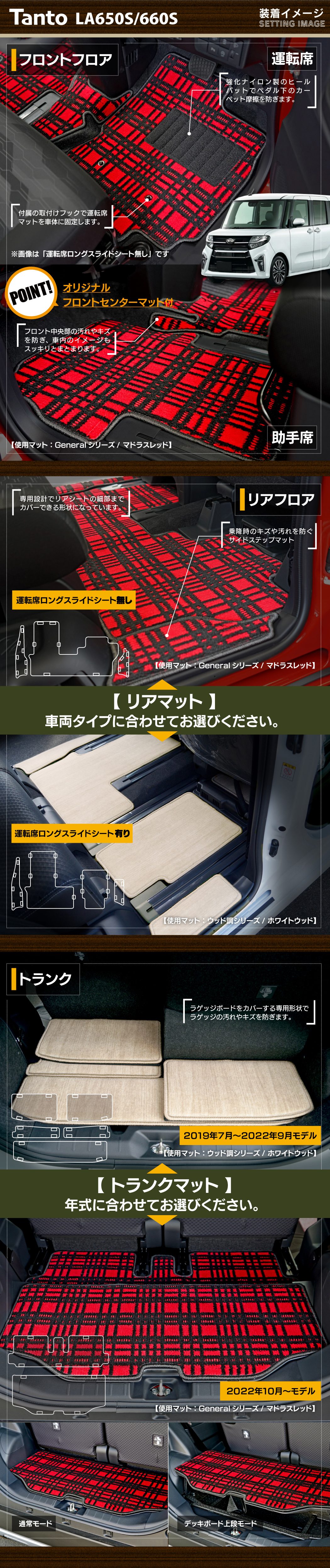 ダイハツ 新型 タント タントカスタム フロアマット+トランクマット ラゲッジマット+ステップマット LA650S LA660S タントファンクロス ◆ウッド調カーペット 木目 HOTFIELD