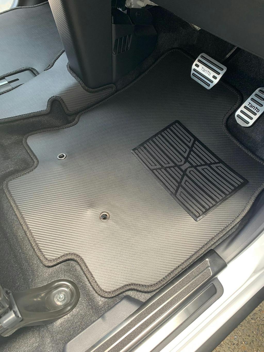 特にアウトドア指向派ではありませんが、フロアマット、ラゲッジマットともにカーボンファイバー調 リアルラバーの商品で統一しました。