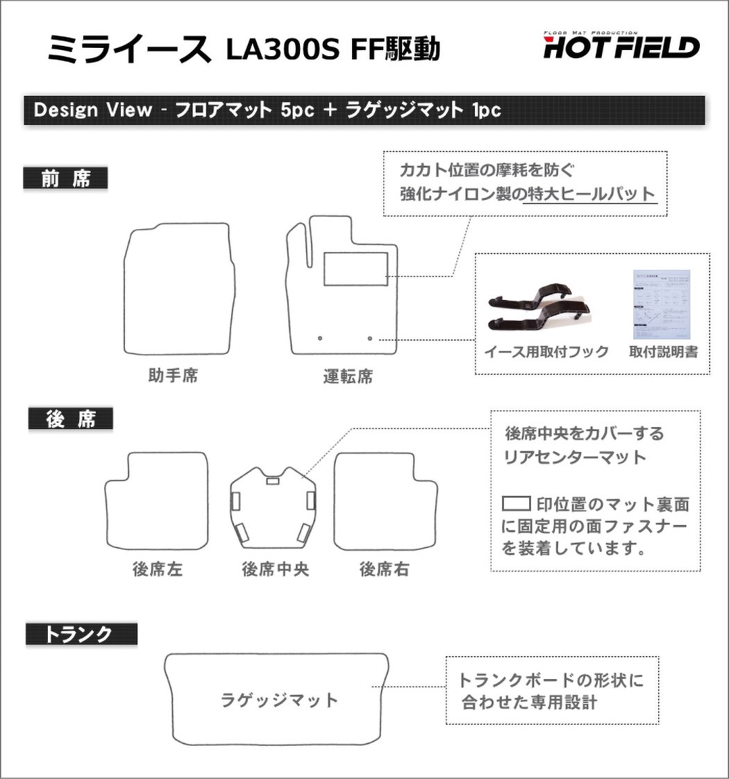 商品構成フロアマット5点+トランク(ラゲッジ)マット1点