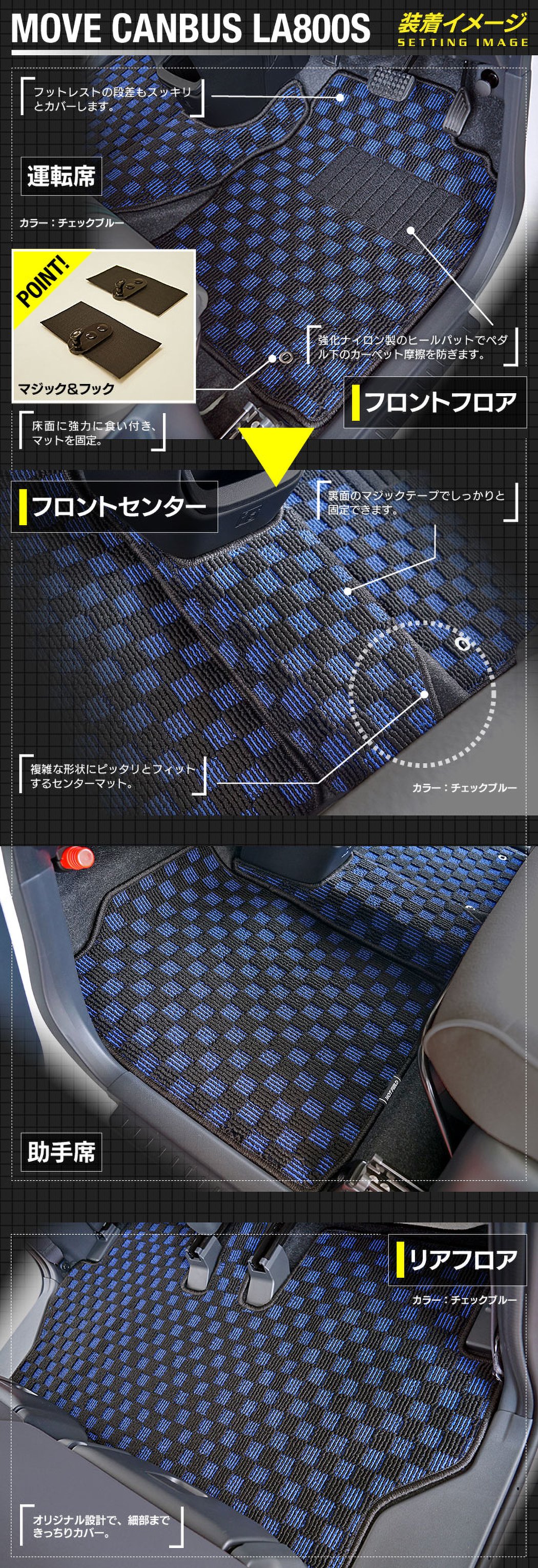 ダイハツ ムーブキャンバス ムーヴキャンバス LA800S LA810S フロアマット 2016年9月~2022年6月対応 ◆カジュアルチェック HOTFIELD