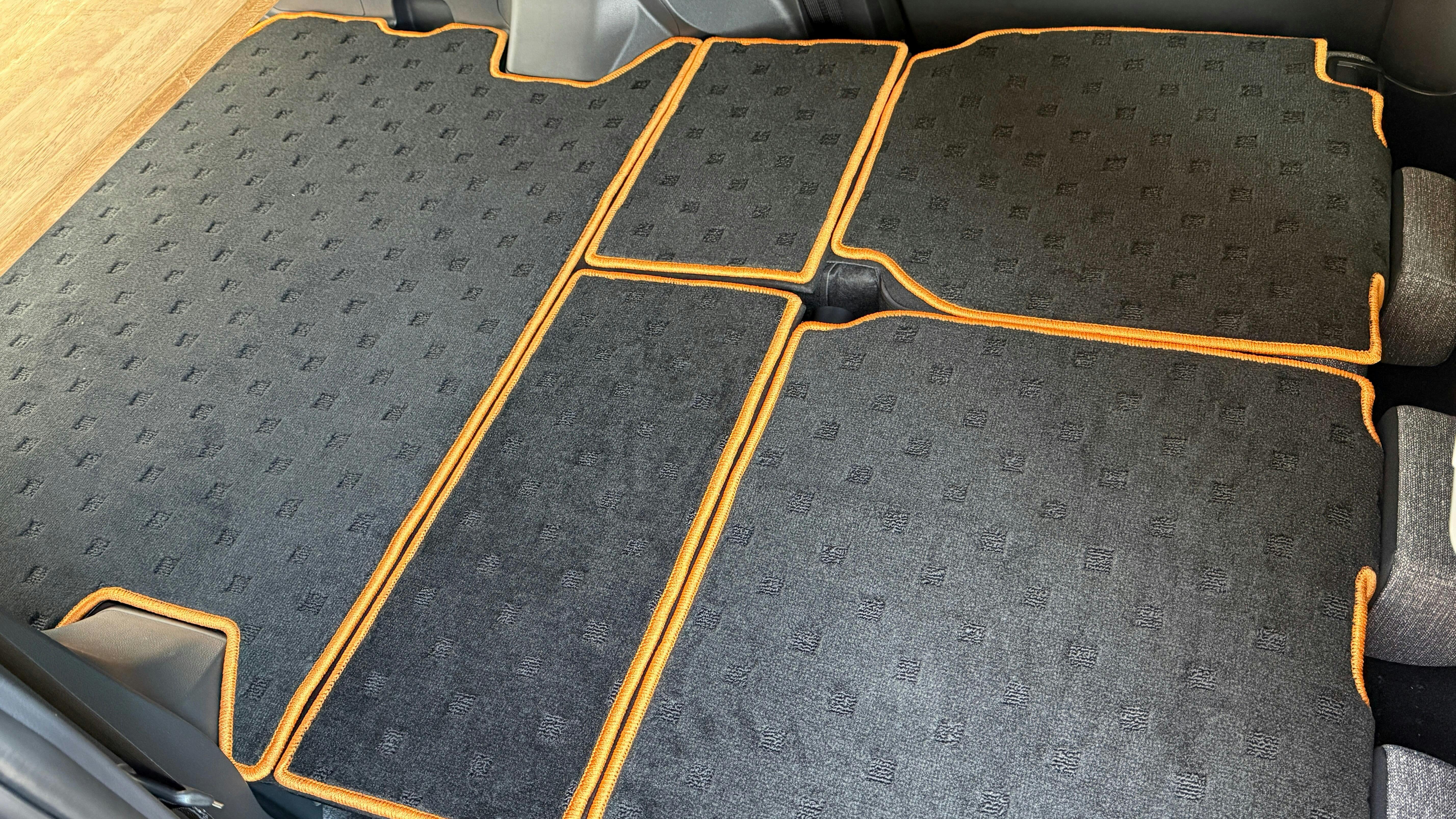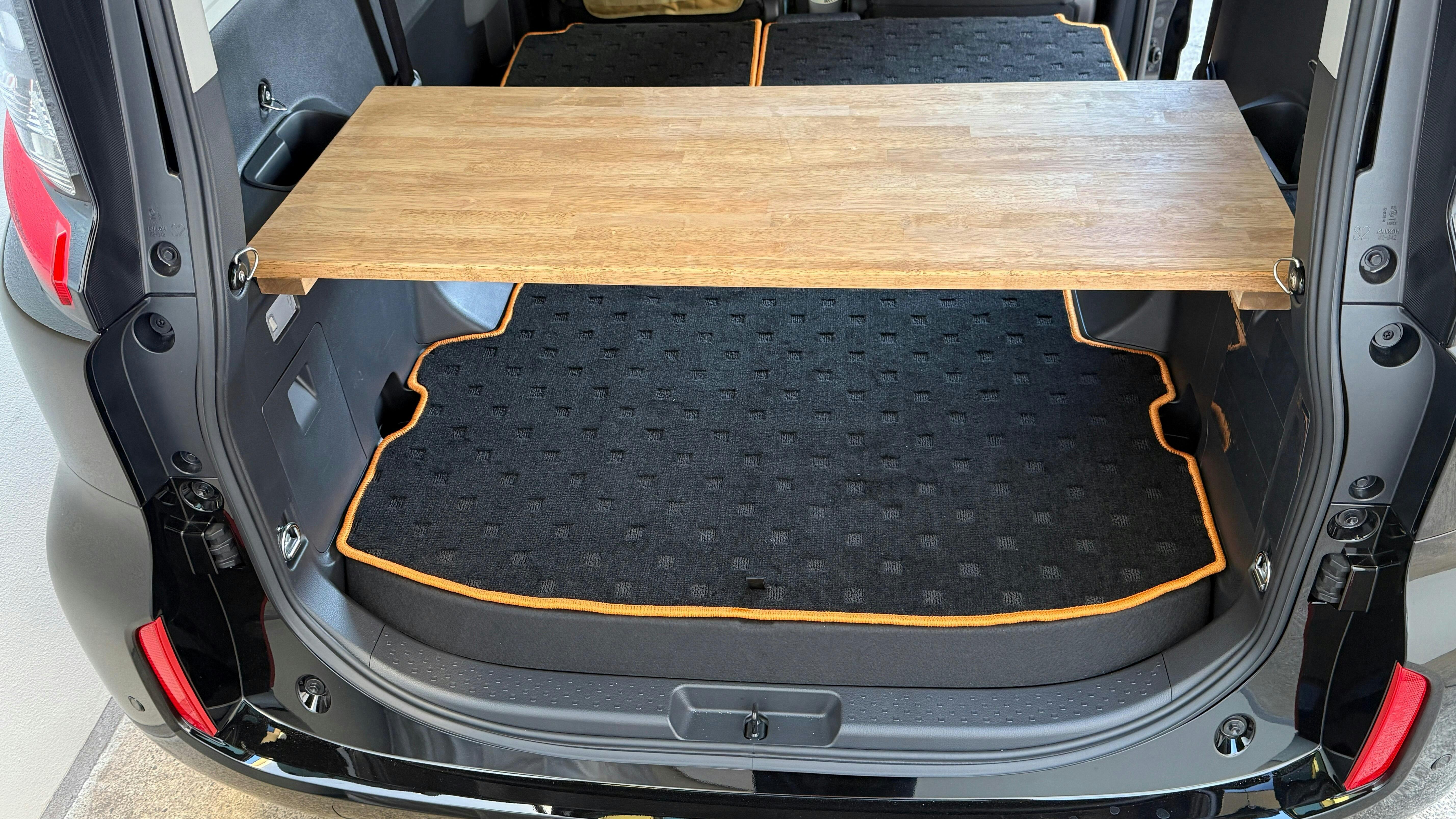 座席折り畳みのことを考えたセパレートタイプはシート背面にぴったりフィットしており、座席を立てた時にずれ落ちることはありませんでした。純正設定のラゲッジマットとしてもいいぐらいの商品だと感じました。
