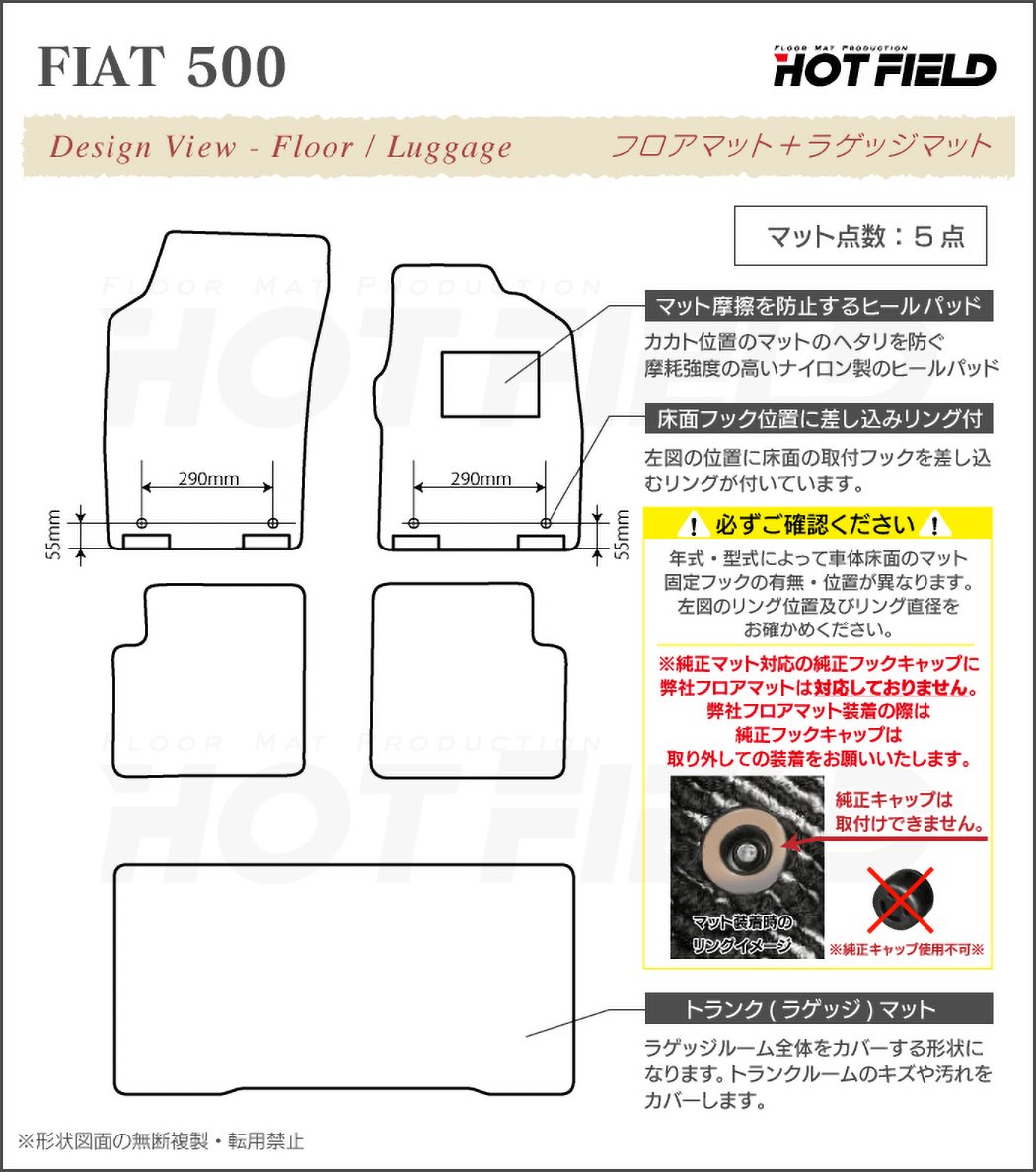 フィアット500 フロアマット+トランクマット ラゲッジマット ◆重厚Profound HOTFIELD