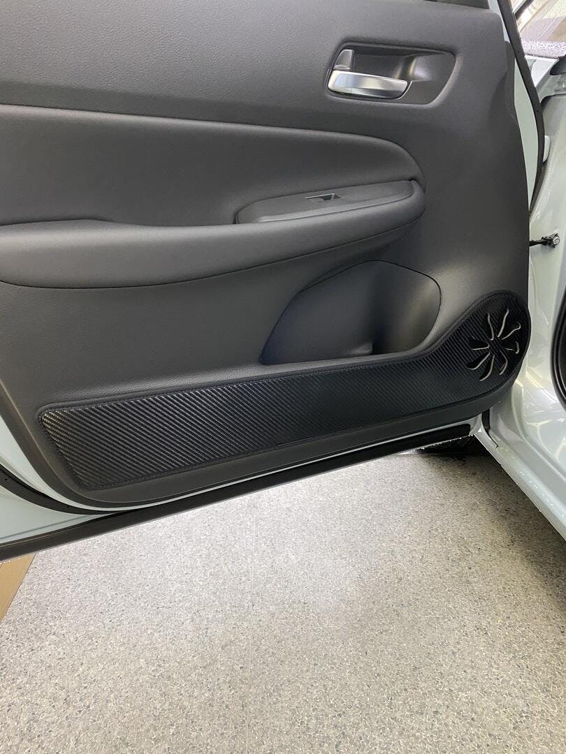 貼付け用テープが付いていて貼るだけでつけることが出来、とても簡単でした。カーボン柄で見た目もかっこいいと思います。