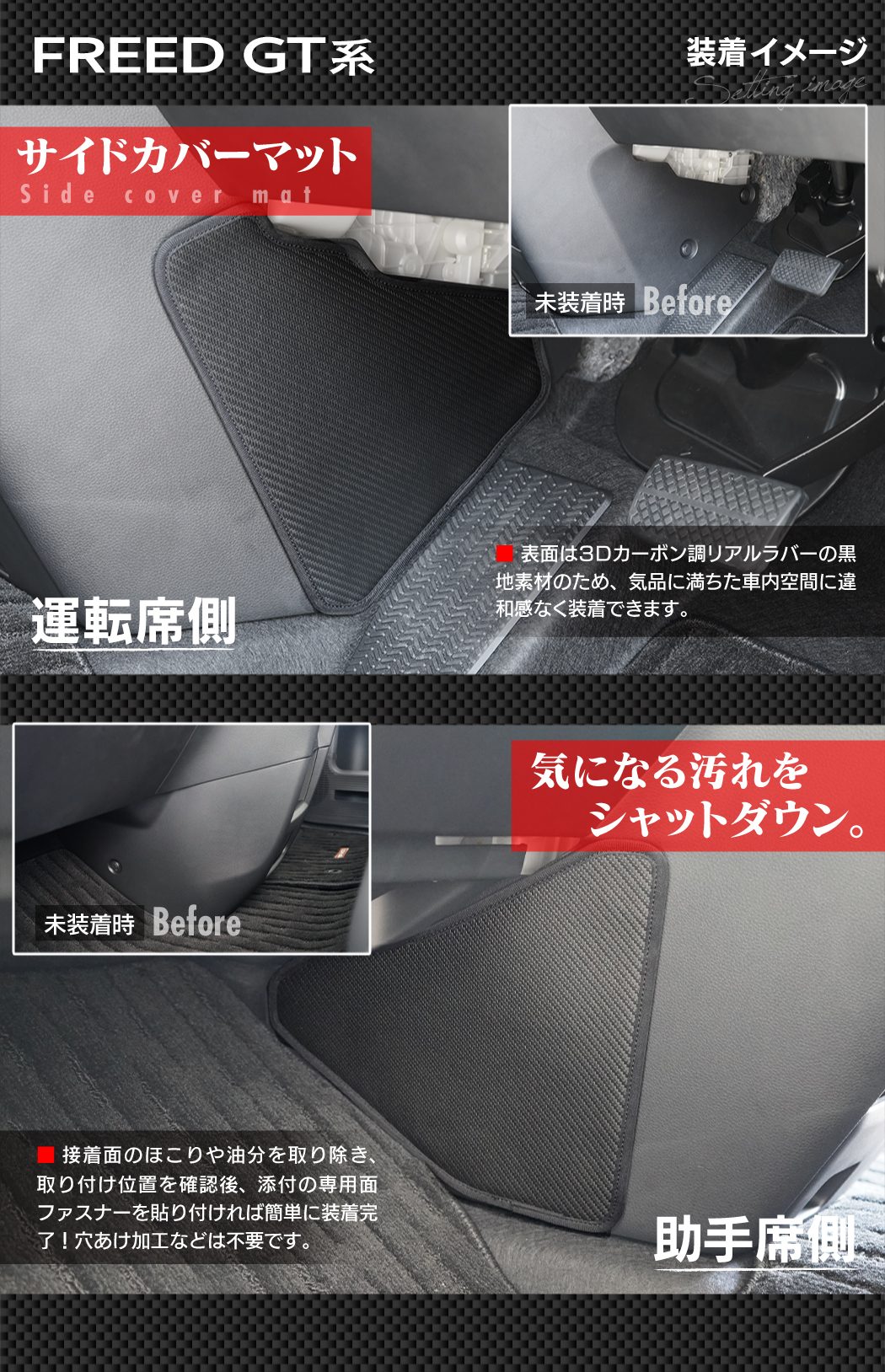 ホンダ 新型 フリード GT系 ドアトリムガード+グローブボックスガード+サイドカバーマット ◆キックガード HOTFIELD