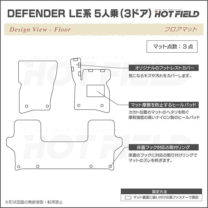ランドローバー 新型 ディフェンダー LE系 5人乗 (3ドア)用 フロアマット ◆シャギーラグ調 HOTFIELD