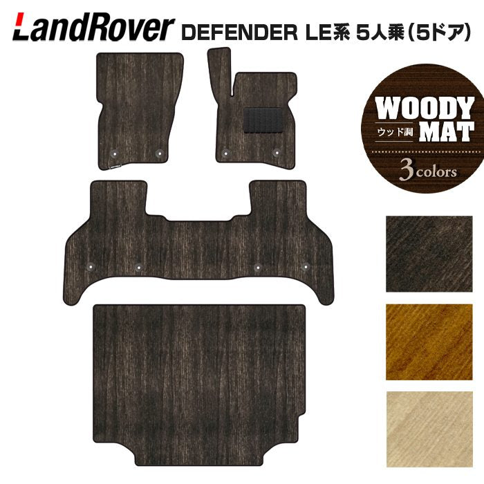 ランドローバー 新型 ディフェンダー LE系 5人乗 (5ドア)用 フロアマット+トランクマット ラゲッジマット ◆ウッド調カーペット 木目 HOTFIELD