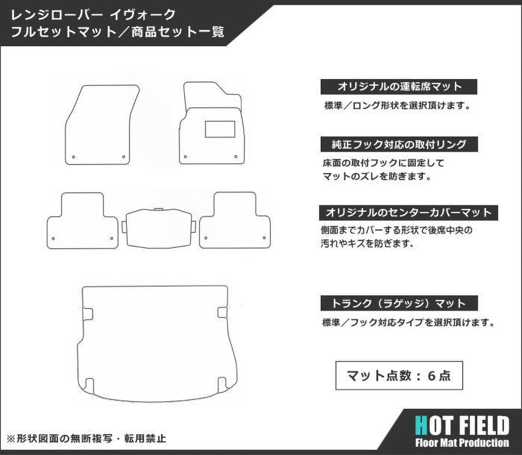 レンジローバー イヴォーク Evoque LV系 2013年11月~2019年5月対応 フロアマット+トランクマット ラゲッジマット ◆シャギーラグ調 HOTFIELD