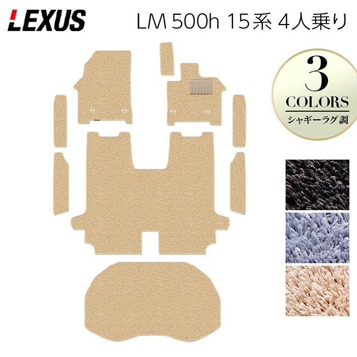 レクサス 新型 LM 500h 15系 4人乗り フロアマット+ステップマット+トランクマット ラゲッジマット ◆シャギーラグ調 HOTFIELD