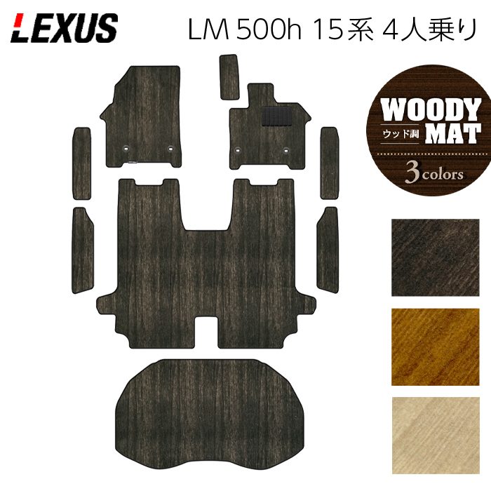 レクサス 新型 LM 500h 15系 4人乗り フロアマット+ステップマット+トランクマット ラゲッジマット ◆ウッド調カーペット 木目 HOTFIELD