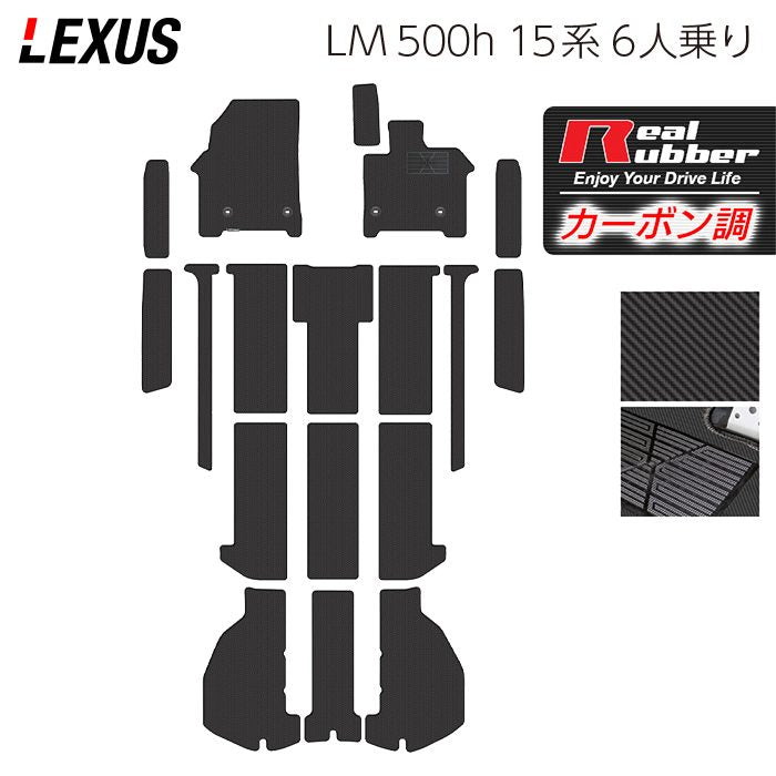 レクサス 新型 LM 500h 15系 6人乗り フロアマット+ステップマット+トランクマット ラゲッジマット ◆カーボンファイバー調 リアルラバー HOTFIELD