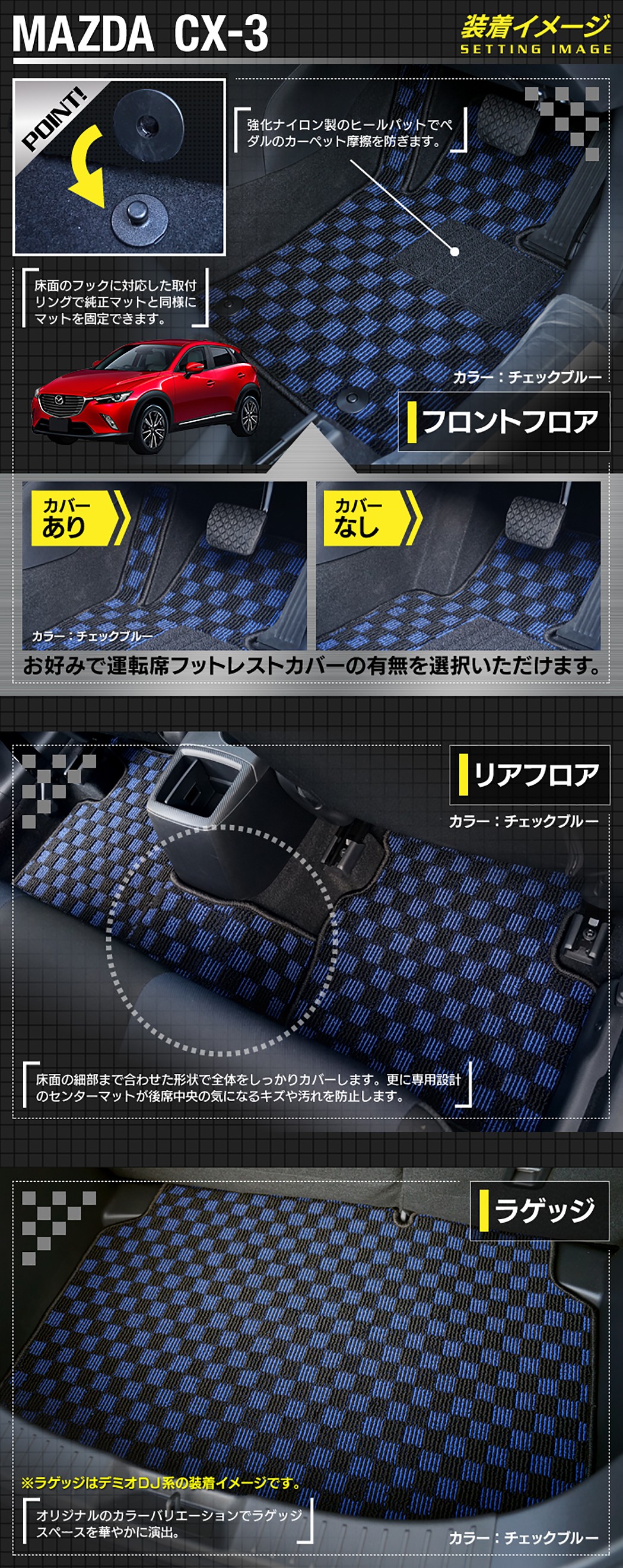 マツダ CX-3 DK系 フロアマット+トランクマット ラゲッジマット ◆カジュアルチェック HOTFIELD