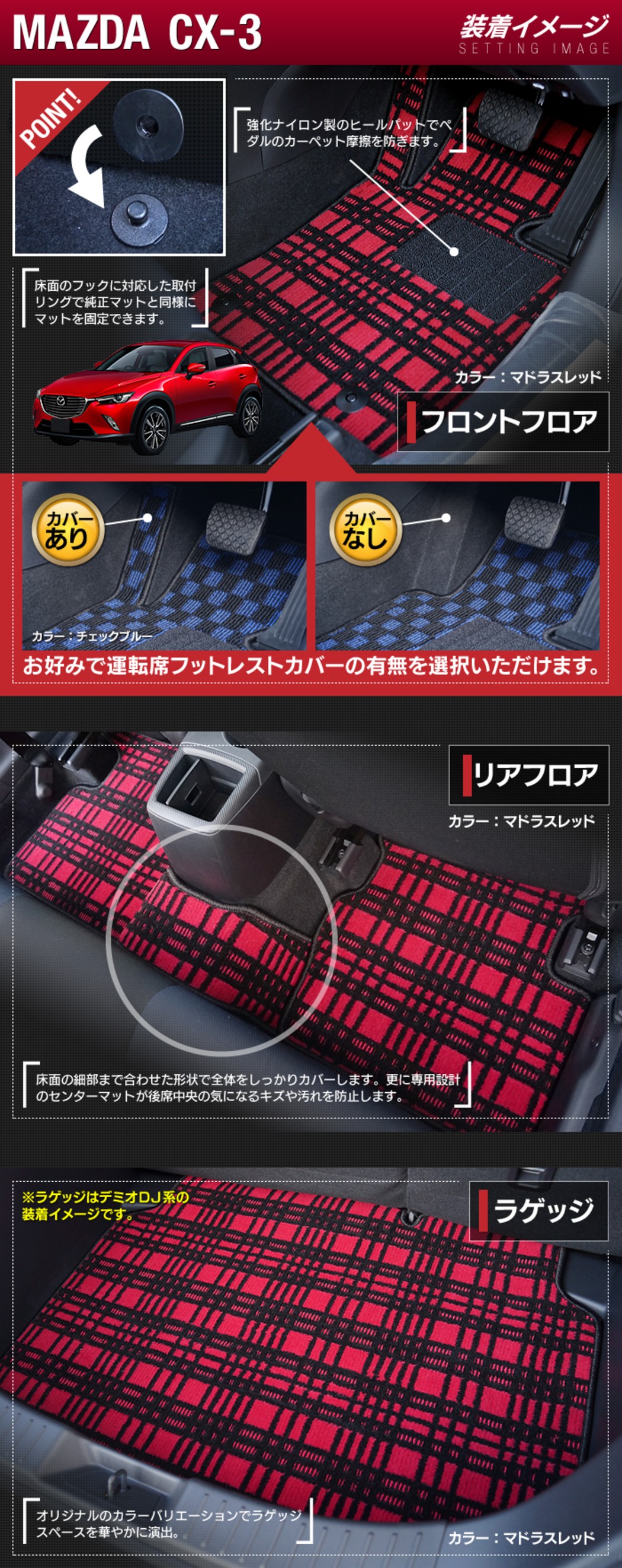 室内の形状にぴったり合うのが気持ちよかったです。色合いの選択は車も実物を見る機会がなかったのと、サンプルを取り寄せて検討する時間もなかったこともあり、チャレンジングな部分もありましたが、マットの色も糸の色もいい感じに内装にマッチしました。納品の相談などにも乗ってくださいましてありがとうございました。おかげさまで天気のいい日に装着できました。