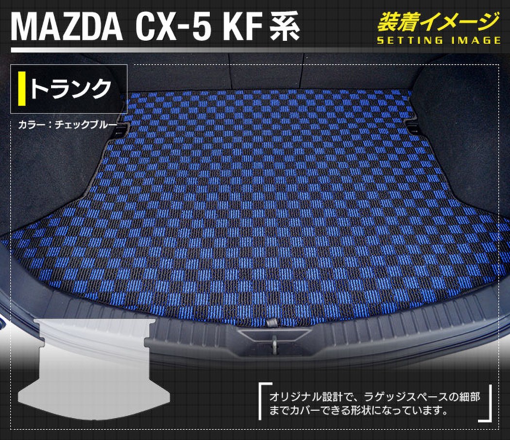 CX-5のラゲッジにピッタリと収まりました。裏面もずれることなくしっかりしています。チェックオレンジでラゲッジが明るくなりました。