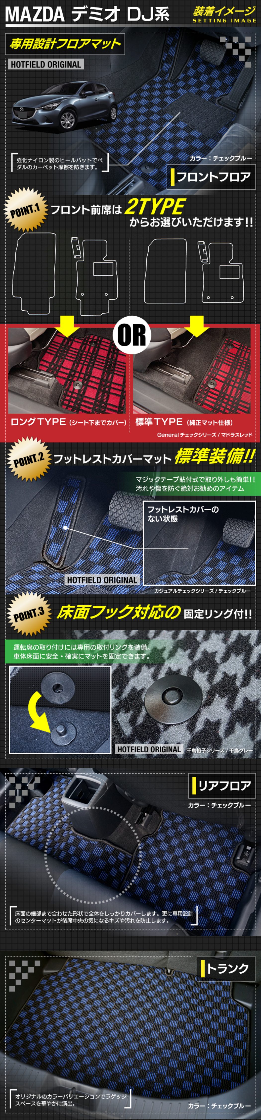 マツダ DEMIO デミオ DJ系 フロアマット+トランクマット ラゲッジマット ◆カジュアルチェック HOTFIELD