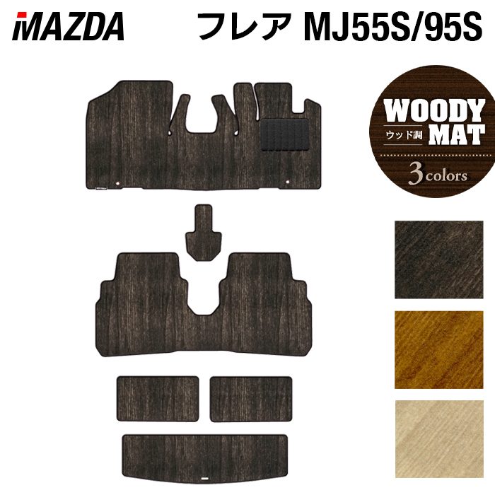 マツダ フレア MJ55S MJ95S フロアマット+トランクマット ラゲッジマット ◆ウッド調カーペット 木目 HOTFIELD