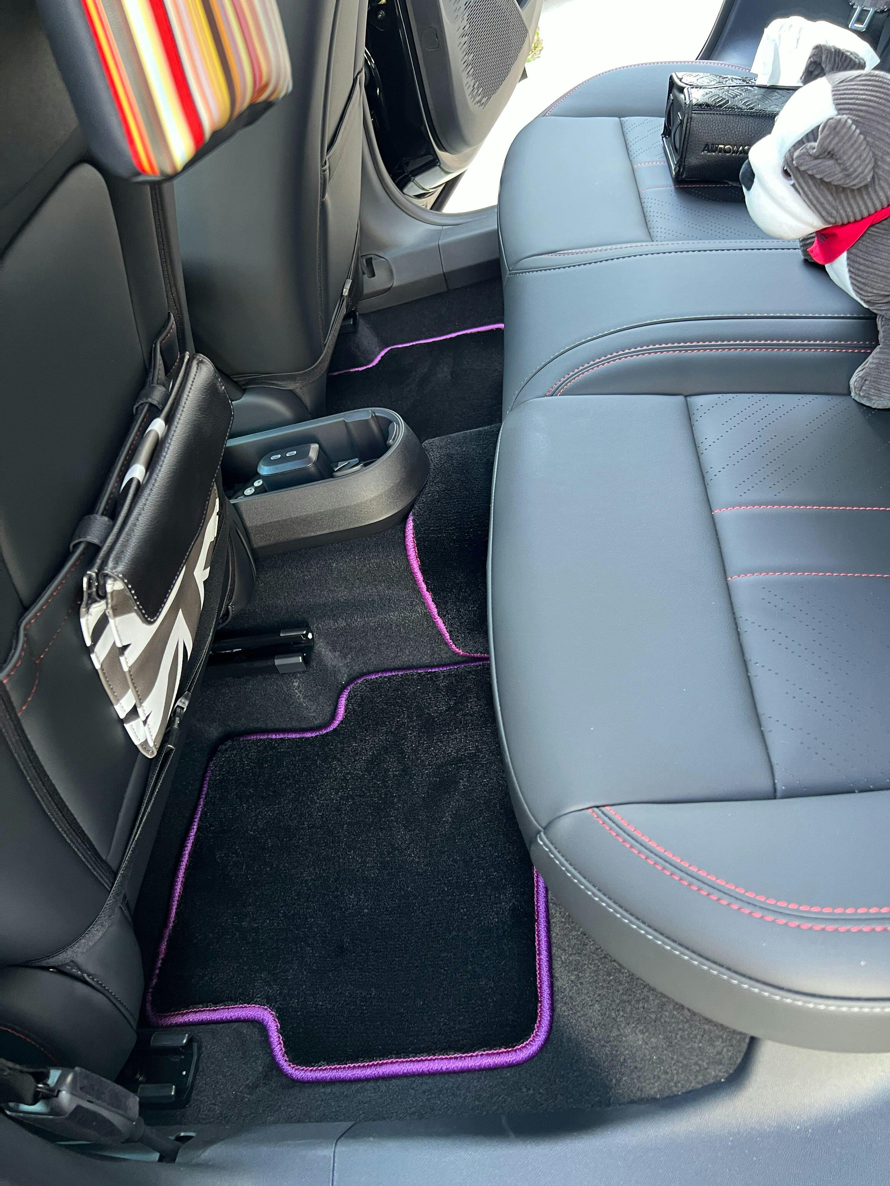 問題は、エースマンの後部座席です。ドア側部分が斜めに大きくカットされており平面席が小さい。 当初は気になりませんでしたがマットの厚みが増した為、(左写真)マットの貧弱感(全体的に小さい)がぬぐい切れない事です。 もう少し横幅(ドア側)を大きく被せる様にしてくれるとゴージャス感が違うと感じました。 (斜め部分は両面テープで貼るなど対応)