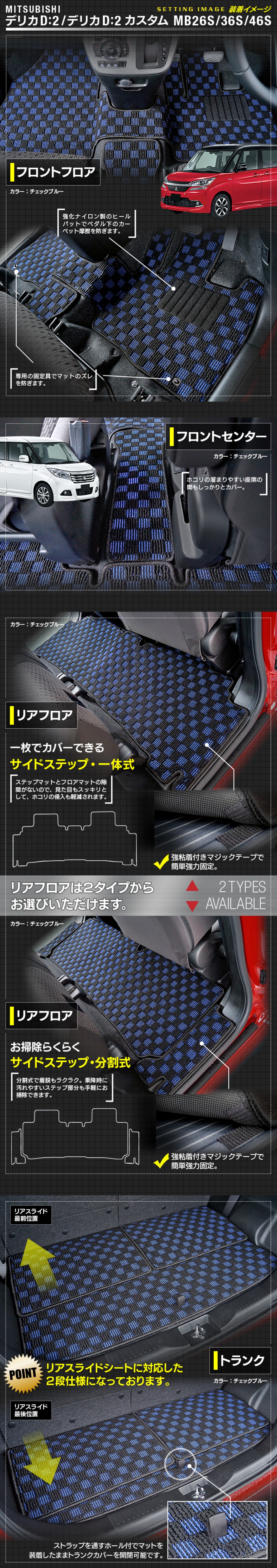 三菱 デリカD2 MB26S MB36S MB46S フロアマット+ステップマット+トランクマット ラゲッジマット ◆カジュアルチェック HOTFIELD