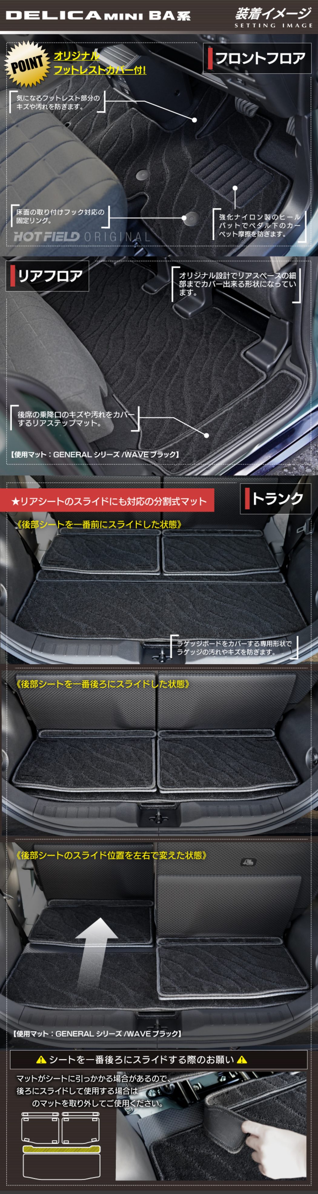 三菱 新型 デリカミニ BA系 フロアマット+ステップマット+トランクマット ラゲッジマット ◆ジェネラル HOTFIELD