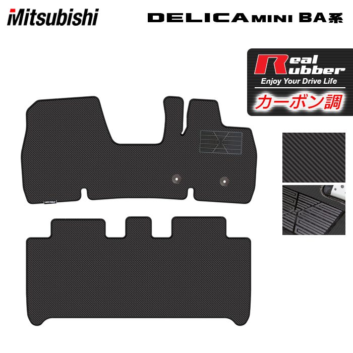 三菱 新型 デリカミニ BA系 フロアマット ◆カーボンファイバー調 リアルラバー HOTFIELD