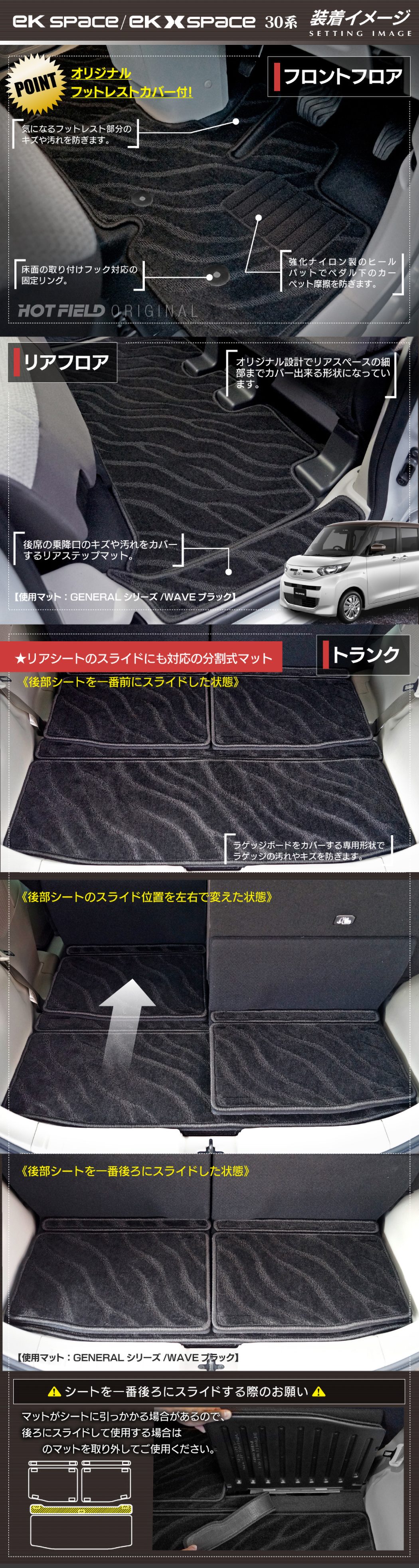 三菱 ekスペース ekクロススペース 30系 フロアマット+ステップマット+トランクマット ラゲッジマット ◆ジェネラル HOTFIELD