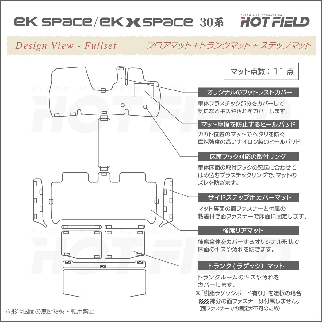 三菱 ekスペース ekクロススペース 30系 フロアマット+ステップマット+トランクマット ラゲッジマット ◆ウッド調カーペット 木目 HOTFIELD