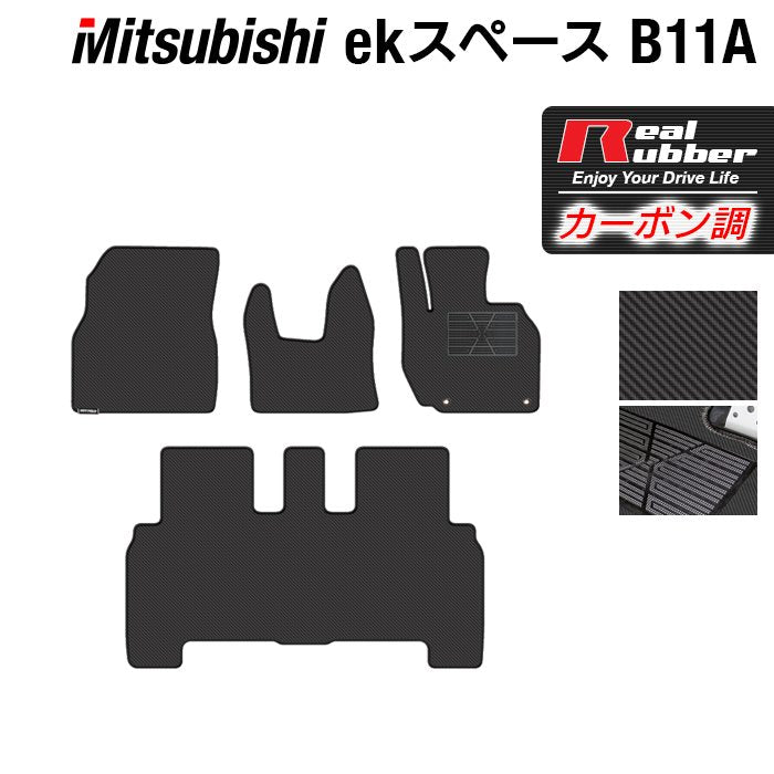 三菱 ekスペース ekスペースカスタム B11A フロアマット ◆カーボンファイバー調 リアルラバー HOTFIELD