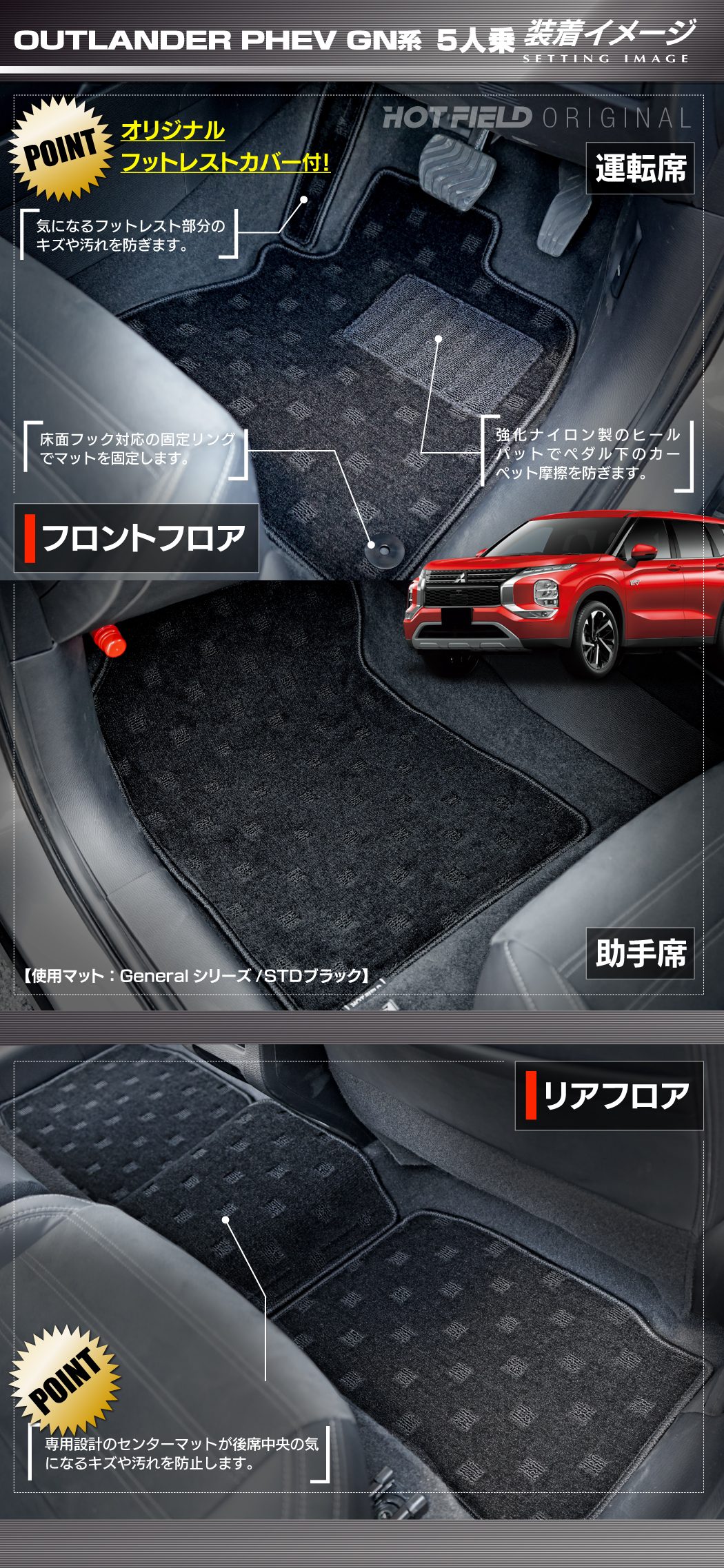 ラリーアート用マットに 似せて黒にオーバーロックを赤に 見た目も良くて良かったです。 ただラゲージマットも同じ仕様で 注文したのですが、 オーバーロックは黒?でした。