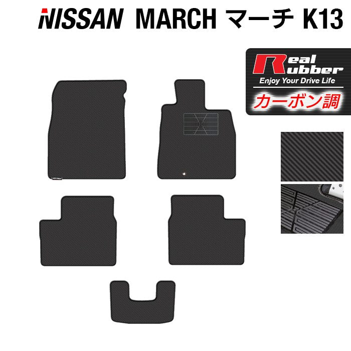 日産 マーチ K13 フロアマット ◆カーボンファイバー調 リアルラバー HOTFIELD