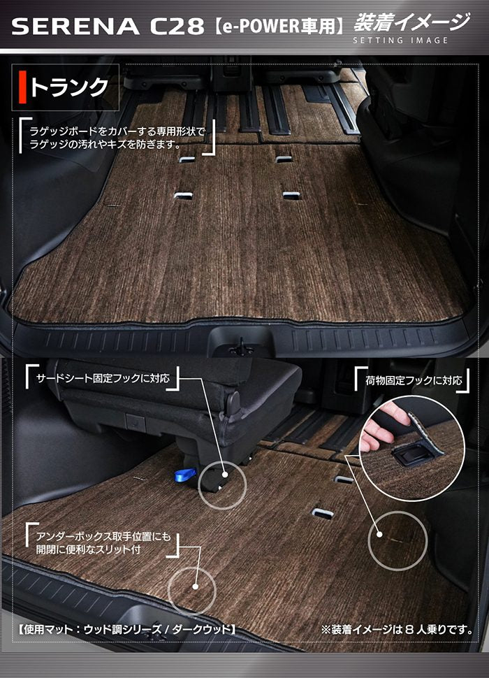 日産 新型 セレナ C28系 e-POWER トランクマット ラゲッジマット e-4ORCEにも対応 ◆ウッド調カーペット 木目 HOTFIELD