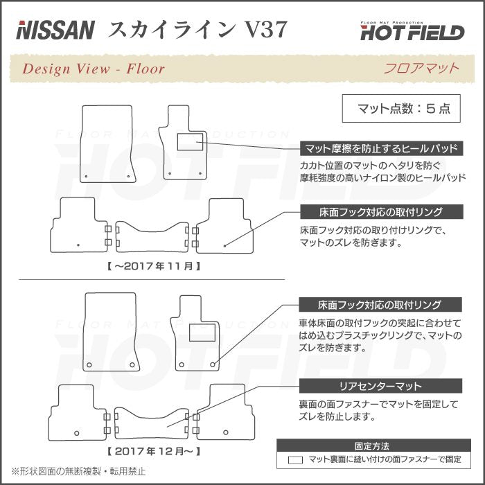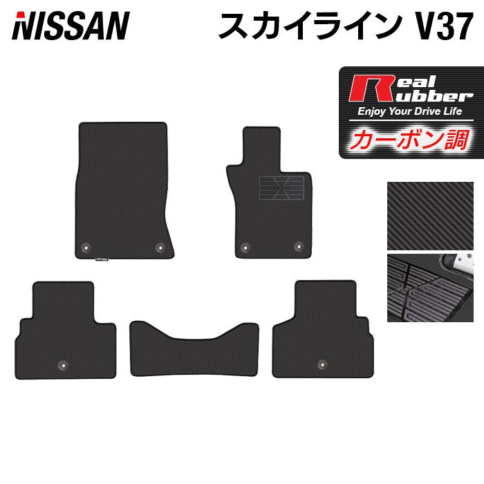 日産 スカイライン V37 フロアマット ◆カーボンファイバー調 リアルラバー HOTFIELD