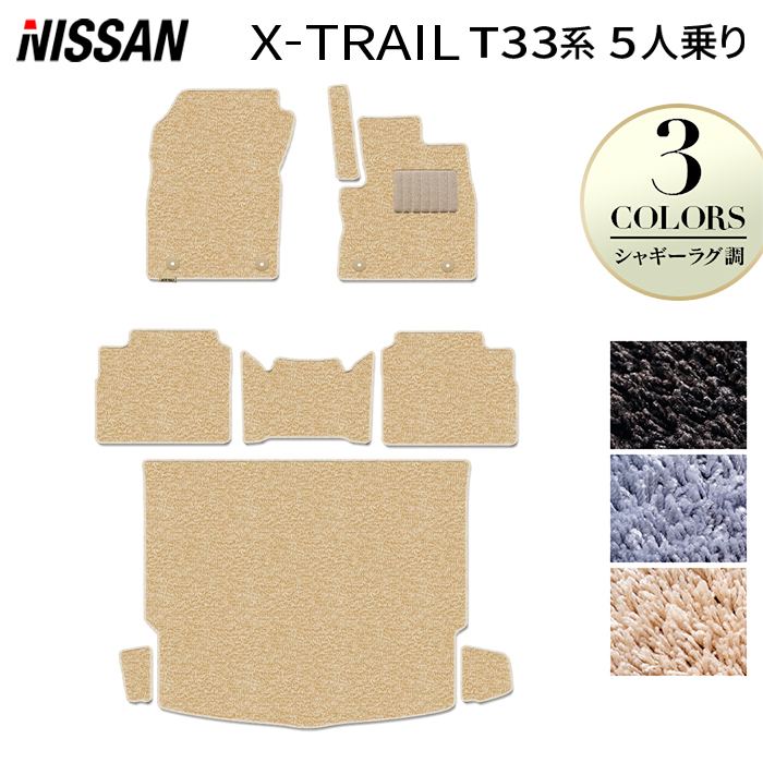 日産 新型 エクストレイル T33系 5人乗用 e-power 2025年9月~にも対応 フロアマット+トランクマット ラゲッジマット ◆シャギーラグ調 HOTFIELD