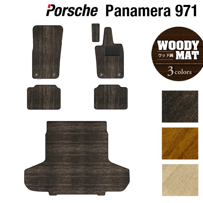ポルシェ パナメーラ (971) フロアマット+トランクマット ラゲッジマット ◆ウッド調カーペット 木目 HOTFIELD