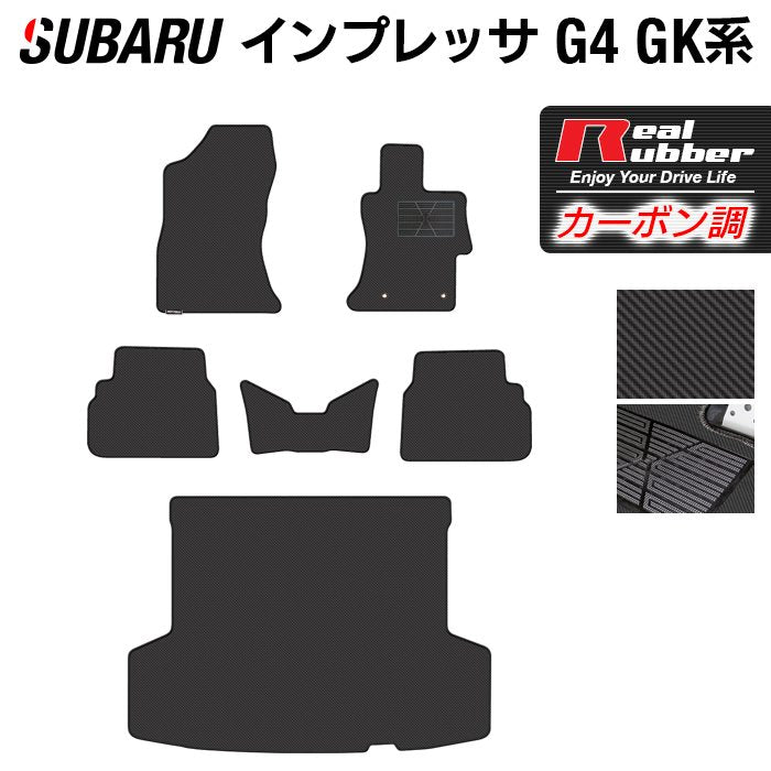 スバルインプレッサ G4 GK系 フロアマット+トランクマット ラゲッジマット ◆カーボンファイバー調 リアルラバー HOTFIELD