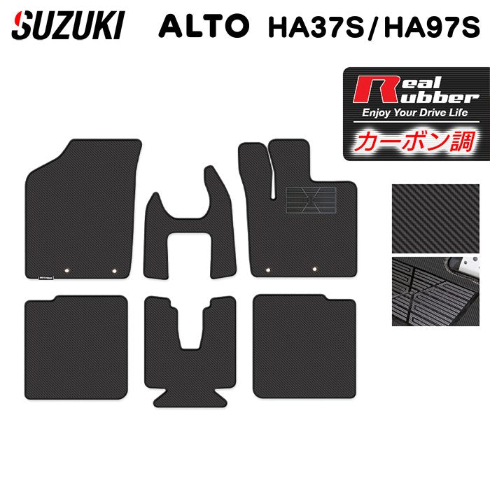 スズキ 新型対応 アルト HA37S HA97S フロアマット ◆カーボンファイバー調 リアルラバー HOTFIELD