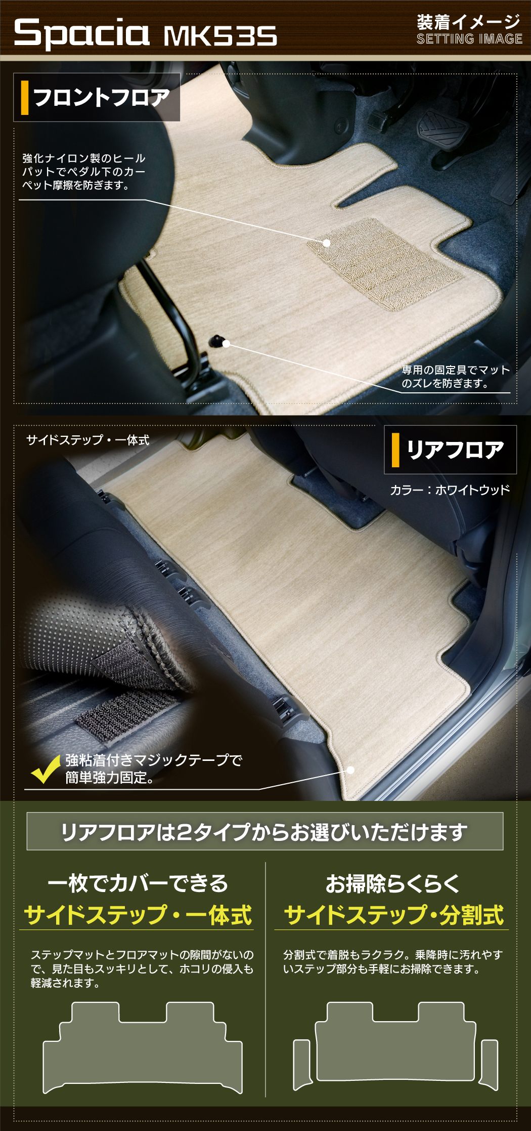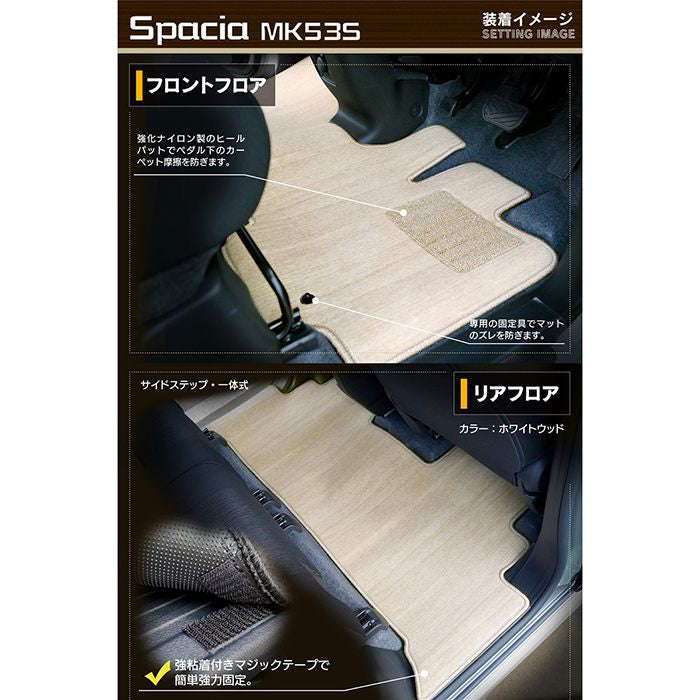 スズキ スペーシア スペーシアギア MK53S フロアマット+リア用サイドステップマット ◆ウッド調カーペット 木目 HOTFIELD