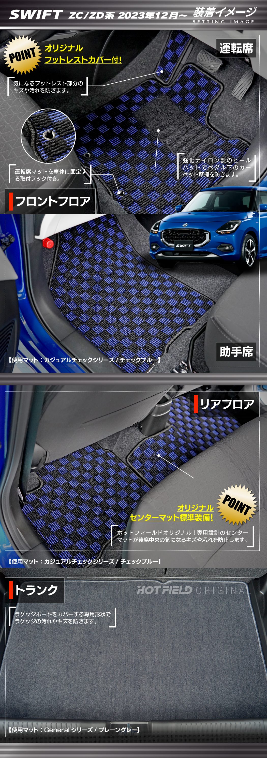 スズキ 新型 スイフト SWIFT ZC系 ZD系 2023年12月~対応 フロアマット+トランクマット ラゲッジマット ◆カジュアルチェック HOTFIELD
