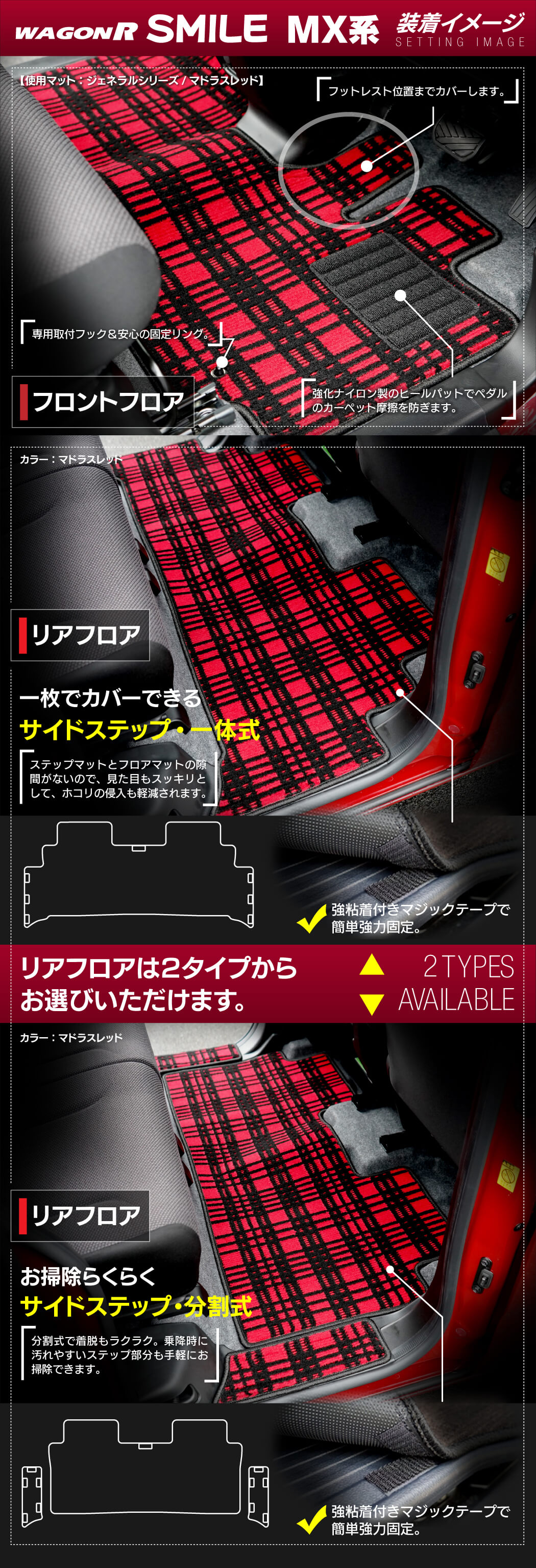 スズキ 新型 ワゴンRスマイル MX系 フロアマット+ステップマット ◆ジェネラル HOTFIELD