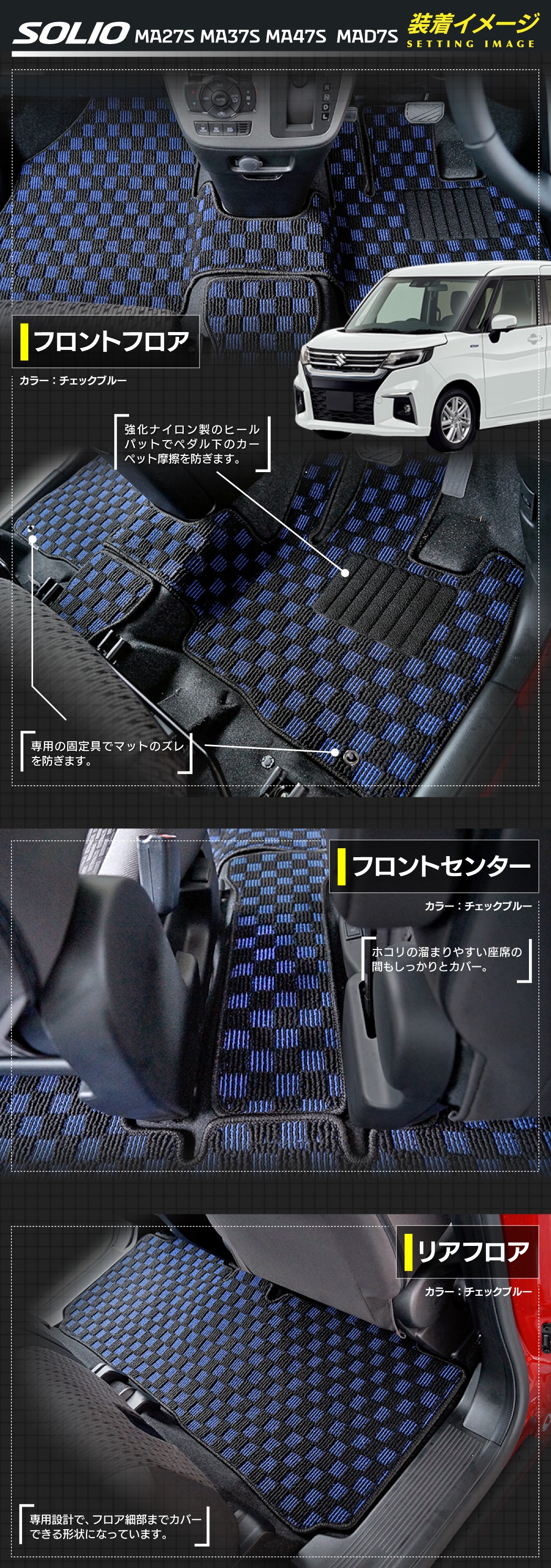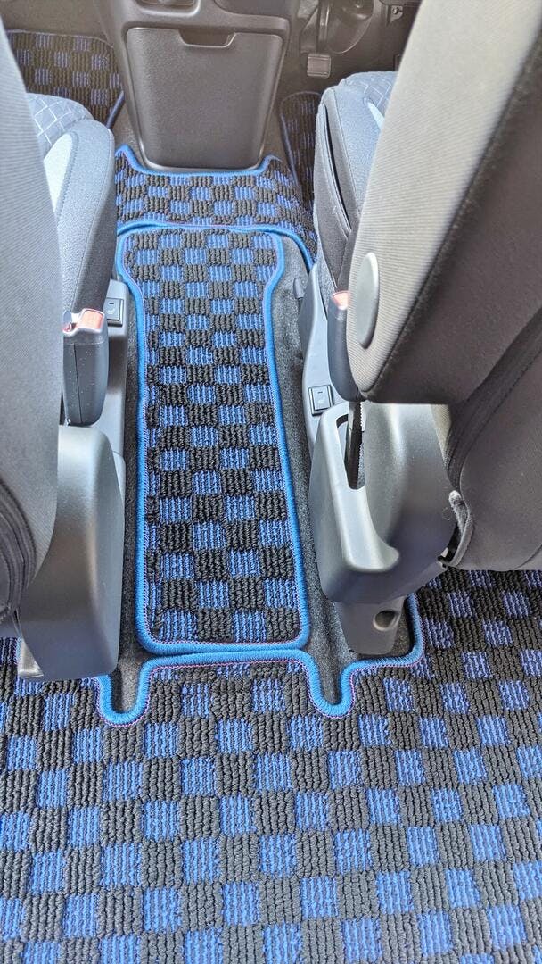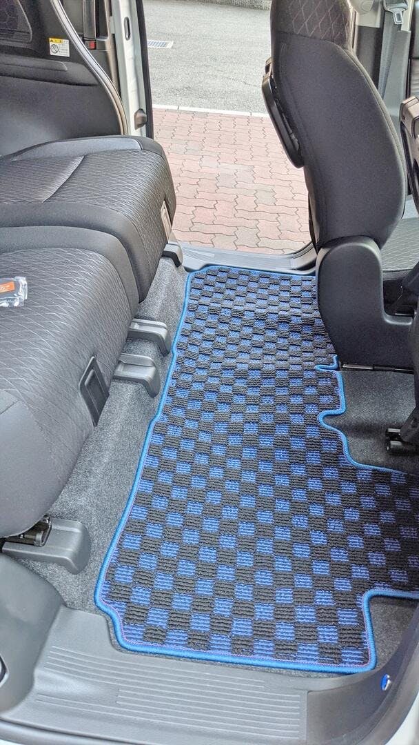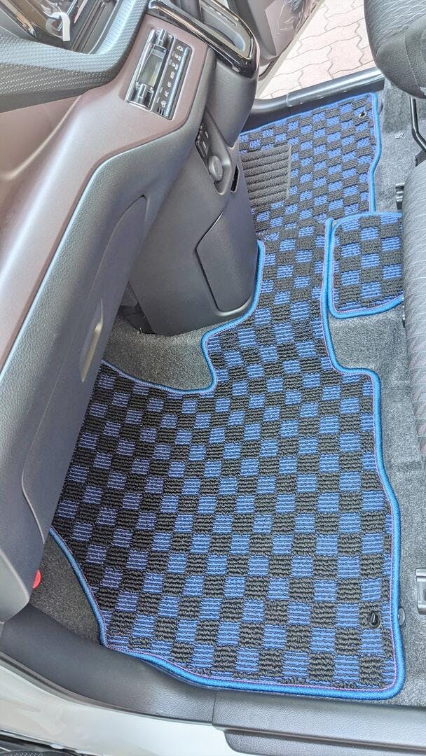 青のチェッカーにしたが、車内が明るくなって良い。 足もとなので派手とは感じなかった。