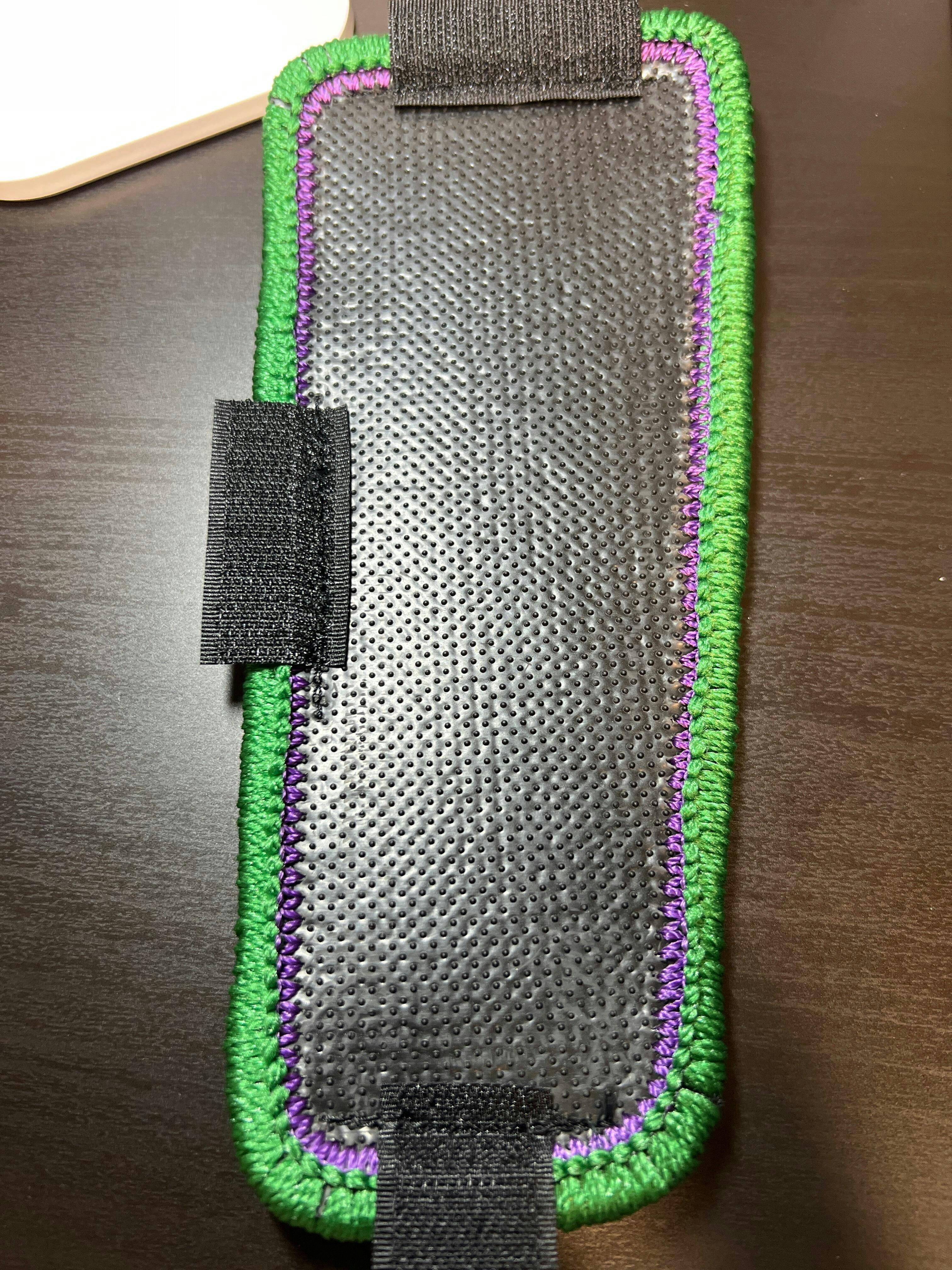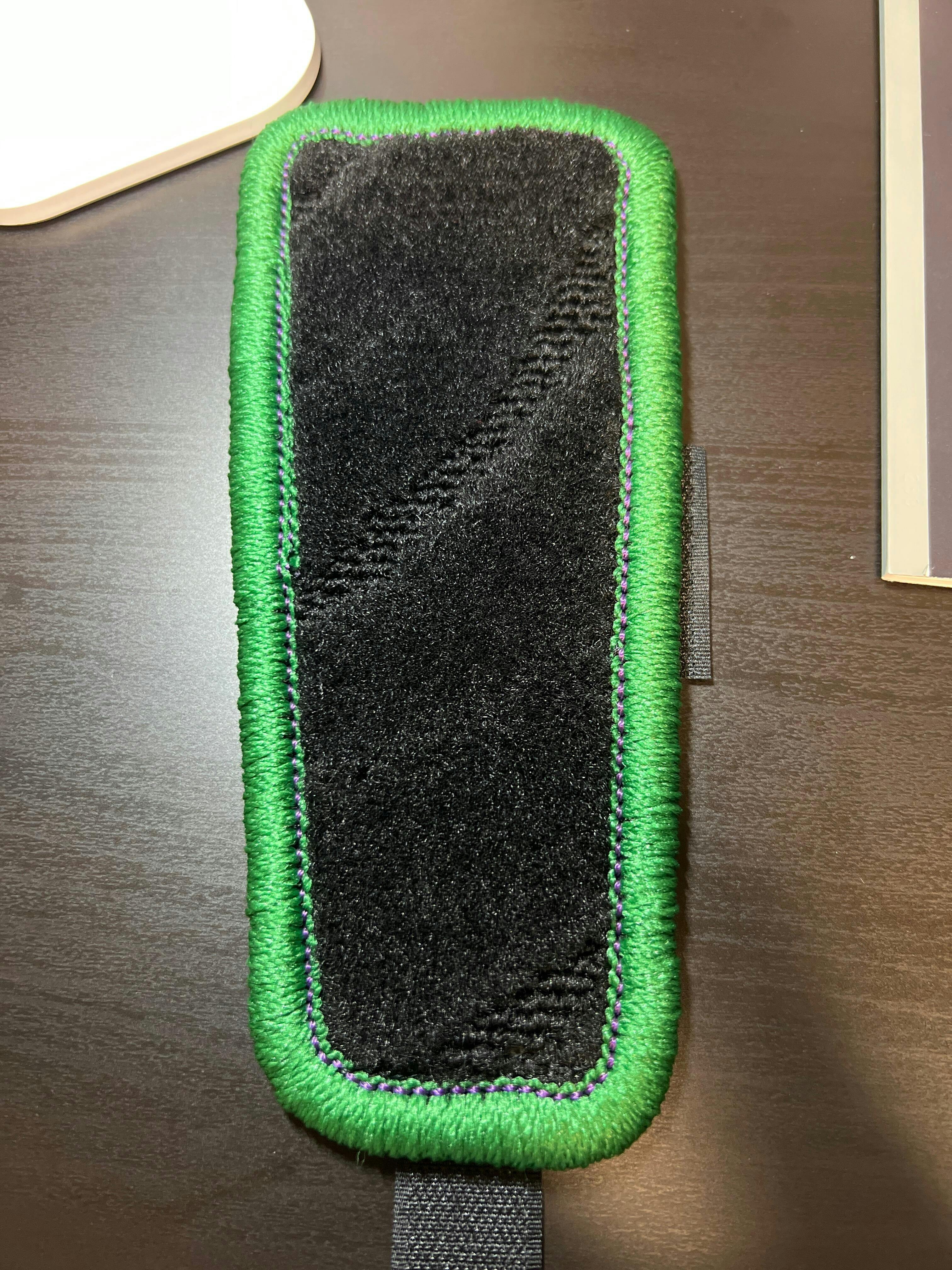 今回はロック糸がグリーン・ステッチがパープルを選択しました。ジョーカーのイメージですがエヴァに見えなくもないですね。