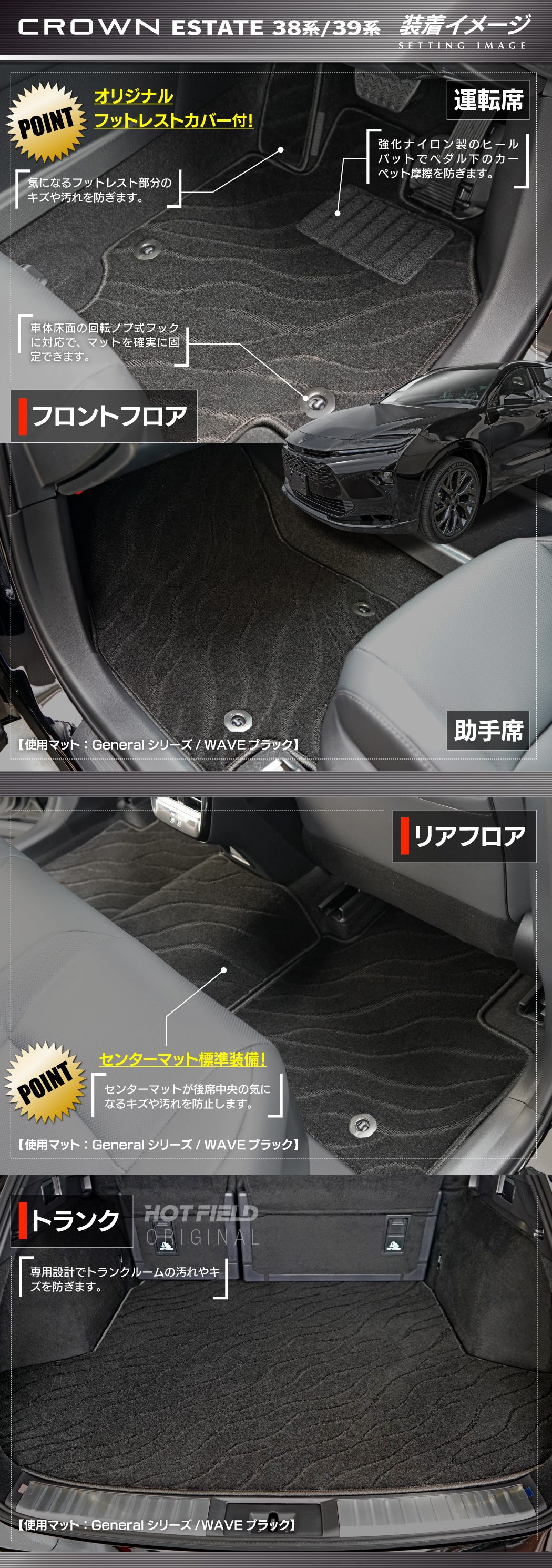 トヨタ 新型 クラウンエステート 38系 39系 フロアマット+トランクマット ラゲッジマット ◆ジェネラル HOTFIELD