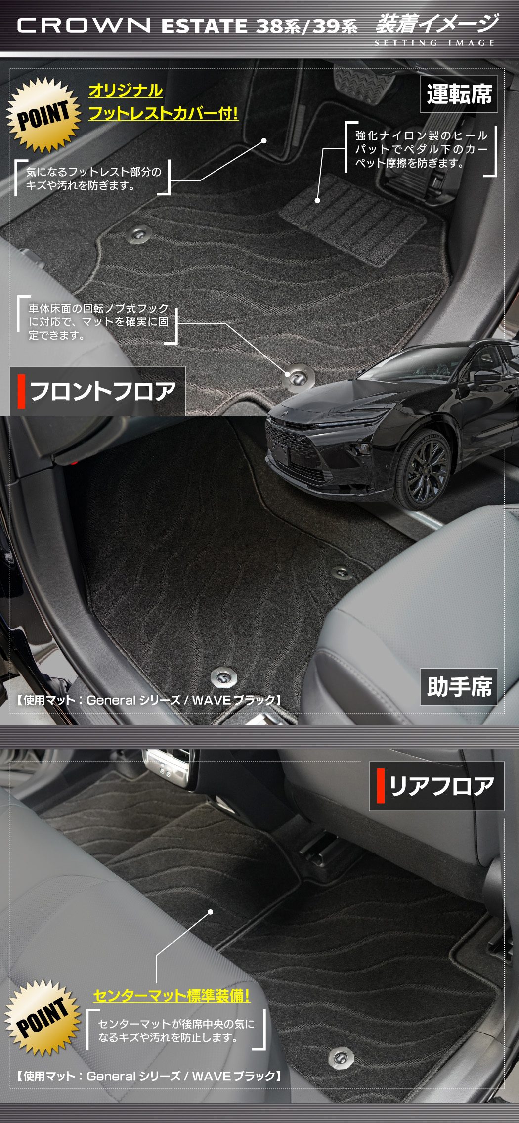HOTFIELDのフロアマットと出会い、今回のエステート用で3回目の購入、義理の息子にも勧め4回目となりますが、期待通り商品で安心して購入することができました。純正と遜色なく、価格からすれば純正以上の仕上がりですね。今後も利用させて頂きます。3月中旬に契約したエステートの納車がまだですので、きましたらマットを敷いた写真をアップします(^^♪