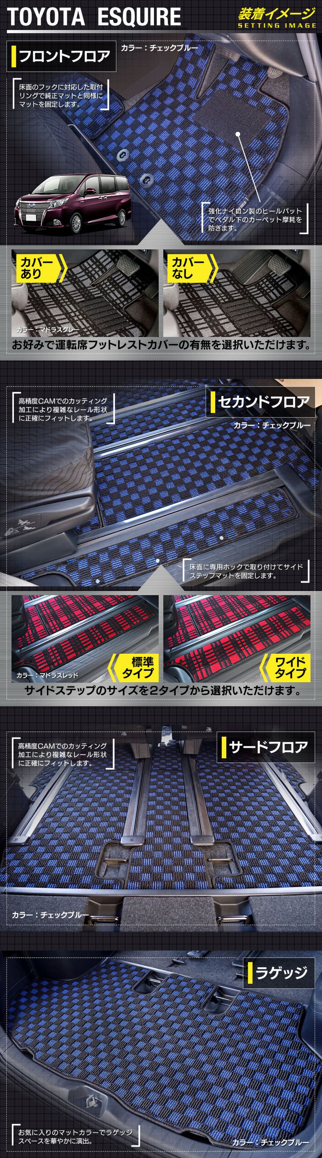 トヨタ エスクァイア 80系 フロアマット+ステップマット+トランクマット ラゲッジマット ◆カジュアルチェック HOTFIELD